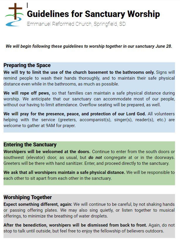 Emmanuel church family! Thank you for your patience as we worship together outdoors one more week (June 21, 2020).